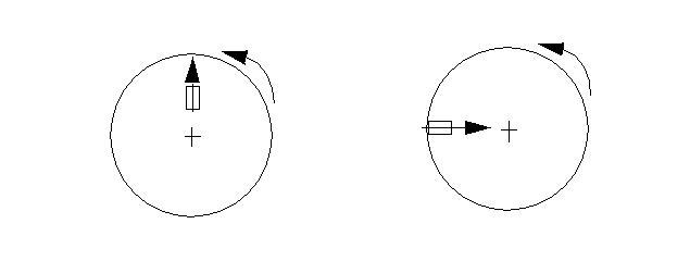 この図は、回転位置に基づいて運動方向がどのように変化するかを示します。