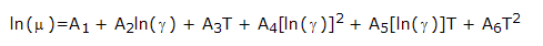 以下の方程式は2次近似粘性係数変化を説明したものです: