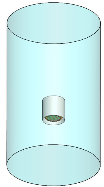 バルブの周囲に円筒形のエンクロージャを作成し、その水平中心に配置します。筐体のサイズは装置のサイズに基づいて下図のように設定します。