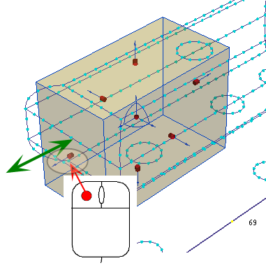 グラブハンドルと座標トライアドを使って領域の位置を設定します。