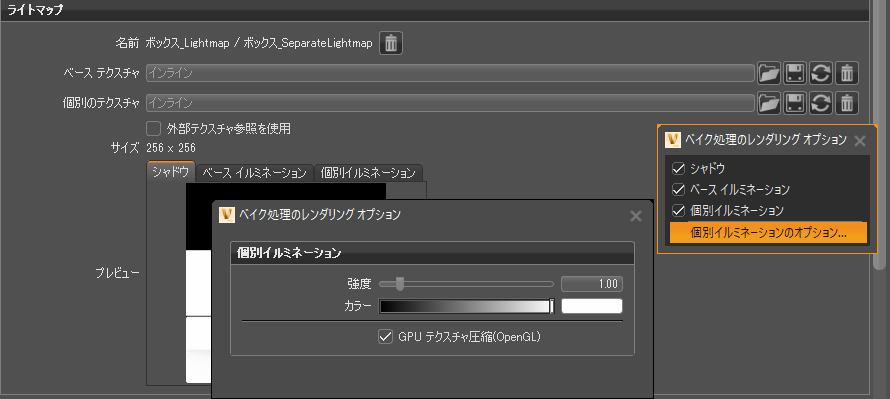 - また、UV エディタにもいくつかの改善が施されました。トライプラナーベースの投影方法を生成するときに、小さな島が多数生成されることがあります。そのため、 [島の数を減らす] という新しい計算オプションが実装されました。このオプションを使用すると、UV レイアウトの島の数が減り、テクスチャリング品質が向上します。このオプションは、トライプラナーベースの UV セットを作成するときに、[ライトとシャドウをベイク処理]ダイアログ ボックスで自動的に有効になります。