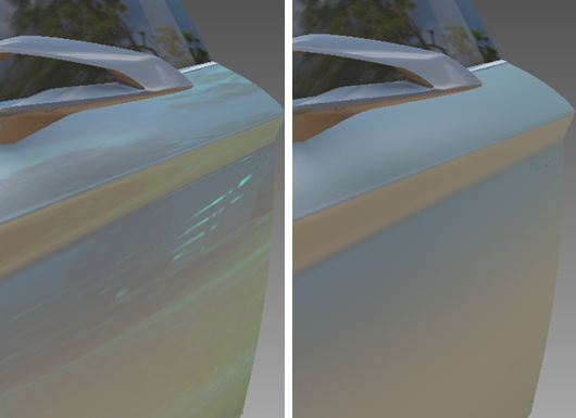 さらに、クリアコートを適用できるすべてのマテリアルに、より高度なクリアコート オプションが追加されました。これで、新しい[粗さ]スライダを使用して、OpenGL で魅力的なサテン ペイントを実現できるようになりました。以上でビデオを終わります。
