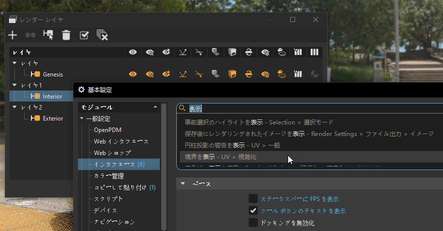 また、UV エディタなどのモジュールの UI も改善され、ウィンドウをより動的にスケールできるようになりました。また、[レンダー レイヤ]ダイアログ ボックスがよりスケーラブルになり、スケールダウンするときに、テキストのみのダイアログ ボックスではなくアイコン化できるようになりました。このウィンドウを小さな領域に収める必要がある場合などに便利です。