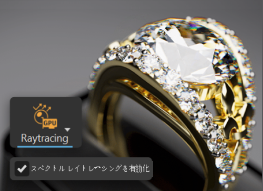 表示品質を向上させるために、欠落していた GPU レイトレーシングの機能をいくつか追加しました。たとえば、GPU モードでスペクトル レイトレーシングを有効にできるようになりました。これは、半透明のマテリアルやライトのシミュレーションなど、スペクトル レイトレーシングが必要な計算を大量に処理するタスクがある場合に非常に便利です。たとえば、半透明の AxF マテリアルの新しいサポート機能には、通常、スペクトル情報が含まれているため、スペクトル レイトレーシングを正しく視覚化する必要があります。