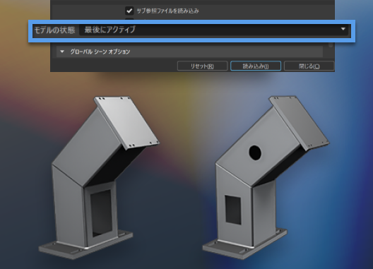 さらに、Inventor ファイルの読み込みが改善されました。状態が[プライマリ]または[最後にアクティブ]である Inventor モデルを読み込むかどうかを決定できるようになりました。これにより、Inventor ファイルを使用する場合の柔軟性が大幅に向上します。