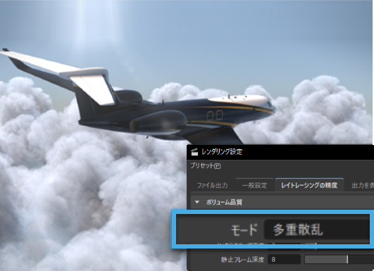 ボリュームを操作する際に、マルチスキャタリングという新しい計算方法が追加されました。多重散乱では、ボリューム内のライトとカラーの散乱が考慮されるため、物理的に正確な結果が得られます。
