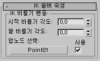 이 롤아웃의 옵션으로 비틀기 조작자의 디스플레이와 IK 체인 오브젝트를 설정합니다.