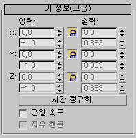 키 정보(고급) 롤아웃에서 시간 정규화를 클릭합니다. 키 전체의 속도가 평준화되도록 키가 움직입니다.