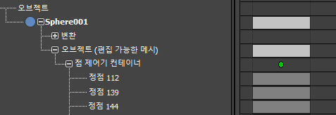 트랙 뷰에 점 제어기 컨테이너 트랙이 표시되며 그 아래에 애니메이션 정점용 트랙이 표시됩니다.