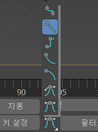기본 접선 유형을 설정하면 입력 및 출력 접선이 모두 해당 유형과 일치하도록 설정됩니다. 애니메이션 기본 설정 패널의 제어기 기본값 그룹을 통해 다르게 내외 접선을 정한 경우 플라이아웃 아이콘이 물음표로 바뀝니다.