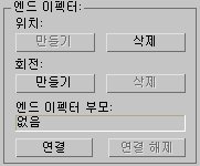 엔드 이펙터를 장면의 다른 오브젝트에 연결합니다. 엔드 이펙터 자체가 오브젝트에 있지 않으므로 트랙 뷰에서 이 연결을 볼 수 없지만 연결된 엔드 이펙터는 상위의 변환을 상속합니다.
