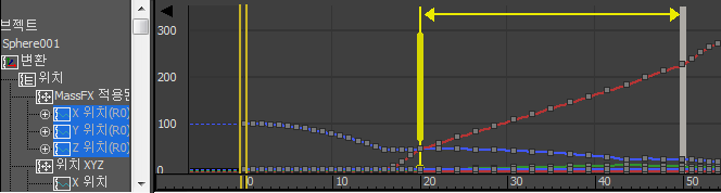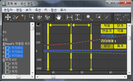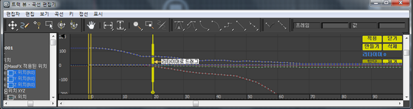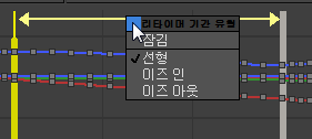 두 번째 오브젝트의 곡선이 리타임이 이미 적용된 상태로 나타납니다. 이는 현재 리타이머의 영향을 받고 있음을 나타냅니다.