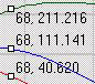 곡선 편집기 모드에서 설정하면 키 창에서 선택한 각 키의 오른쪽에 시간 또는 프레임 번호 및 값을 표시합니다. 예를 들어 68, 40.620(프레임=68, 값=40.620)입니다. 도프 시트와 곡선 편집기 모드 둘 다에서 통계는 선택한 단일 키에 대해서만 키 상태 도구 모음(표시되는 경우)의 숫자 필드에도 나타납니다. 여러 키를 선택하는 경우 표시되는 프레임 번호는 가장 최근에 선택한 키의 프레임 번호이고 값 필드는 선택한 모든 키의 값이 동일해질 때까지 비어 있습니다.