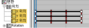 도프 시트). 또한 필요한 경우 X 위치, Y 위치 및 Z 위치 트랙을 볼 수 있도록 트랙 계층을 확장합니다.