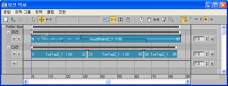모션 클립 내의 시간을 선택하고 해당 시간의 모션을 동일한 클립의 다른 시간으로 드래그하여 시간 왜곡을 사용합니다. 클립의 전체 시간은 변경되지 않으므로 오브젝트는 동일한 시간으로 전체 모션을 실행하지만 특정 부분은 빨리 실행하고 다른 부분은 느리게 실행합니다.