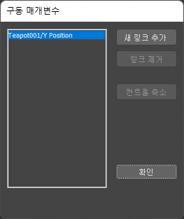 트랙 뷰 계층에서 구동 제어기를 마우스 오른쪽 버튼으로 클릭하여 구동 매개변수 대화상자를 표시합니다. 리스트 창에 할당된 모든 트랙이 표시됩니다.