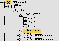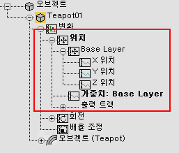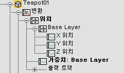 레이어를 사용하도록 설정할 때 선택된 오브젝트에 리스트 제어기 트랙이 이미 있는 경우 해당 제어기는 새 레이어 제어기의 기본 레이어 내에 보존됩니다.