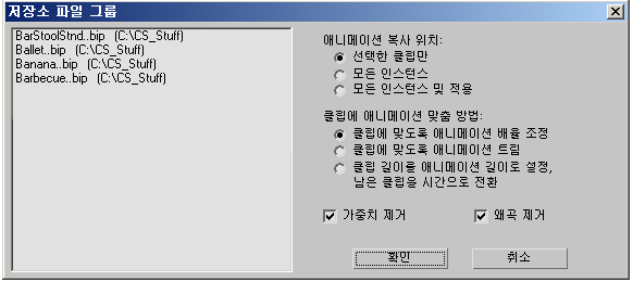 저장소에서를 선택하면 저장소 파일 그룹 대화상자는 할 때 열립니다. 이 작업은 선택된 클립을 저장소에서 선택한 클립으로 교체합니다. 이 대화상자는 저장소의 전체 클립 리스트를 표시합니다.