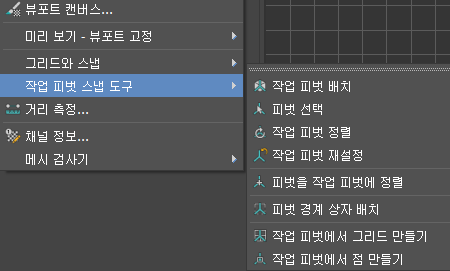 작업 피벗 스냅 및 해당 옵션은