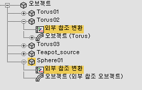 3ds Max는 외부 오브젝트의 제어기에서 장면 오브젝트의 변환 제어기를 참조합니다.