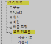 블록 제어기는 한 범위의 시간에 걸쳐 다중 오브젝트로부터 몇 가지 트랙들을 결합할 수 있게 하는 전역 리스트 제어기 입니다. 이 블록들은 어느 곳에서든지 시간내에 애니메이션을 재생성하기 위해 사용됩니다. 블록은 트랙 뷰에서 시각적으로 추가, 삭제, 배율 조정, 이동될 수 있으며 저장될 수 있습니다. 블록들은 절대적 또는 상대적 애니메이션을 나타낼 수 있습니다.