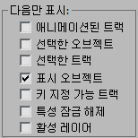 표시 그룹에는 계층 리스트 창에 다음을 표시하는 옵션이 있습니다.