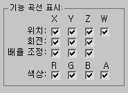 주: “W” 및 “A” 필터는 Point4 제어기에 사용됩니다. W는 단순히 위치에 대한 네 번째 필터이고 A는 Point4 제어기를 기준으로 하는 부동 소수점 RGBA 제어기에 사용됩니다.