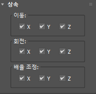 축을 켜면 해당 축에 대한 변환 정보가 상위에서 차일드으로 전달되고, 축을 끄면 해당 축의 변형 정보가 차일드에서 무시됩니다.