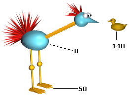 전체 운동학적 체인에 거의 항상 하위->상위 우선 순위를 할당합니다. 그림의 구조 체인에서는 몸체를 루트 오브젝트로 사용하고 오리를 엔드 이펙트로 사용합니다.