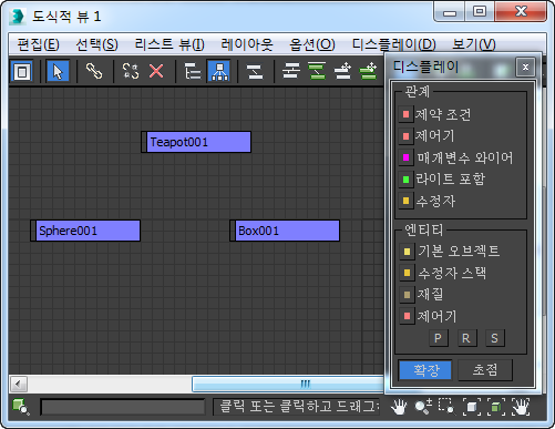 도식적 뷰가 열리고 장면 노드 및 플로터 표시가 표시됩니다.