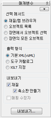 이 설정을 통해 재질 할당 사항 중 내보낼 부분을 정의할 수 있습니다.