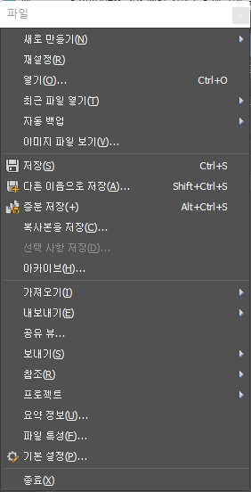 각 파일 메뉴 옵션에 대한 자세한 내용은