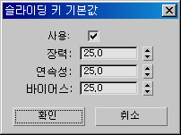 슬라이딩 키 기본값 대화상자를 엽니다. 이 대화상자에서 후속 TCB 키의 새 기본값을 설정할 수 있습니다.