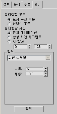 - 필터링할 범위를 전체 Biped 애니메이션, 활성 시간 세그먼트 또는 사용자 정의 프레임 범위로 설정합니다.