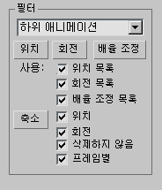 주: 하위 애니메이션 필터를 선택하면 패널 아래의 필터 버튼이 사라집니다. 이 필터의 동작이 즉시 적용되기 때문입니다.
