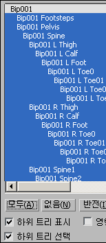 Biped 질량 중심의 기본 이름은 Bip001입니다. 구조 롤아웃에서 Biped의 이름을 변경한 경우 리스트에서 이름 변경된 질량 중심을 찾습니다.