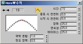 키를 오일러 컨트롤(쿼터니언/오일러 롤아웃)로 변경하고 다른 키를 지나도록 드래그할 경우 키의 접선 유형이 유지됩니다.