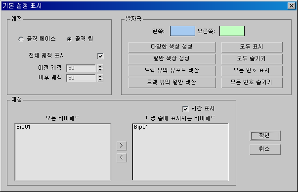 이 대화상자의 컨트롤을 사용하여 발자국, 궤적 및 재생 표시를 변경할 수 있습니다.