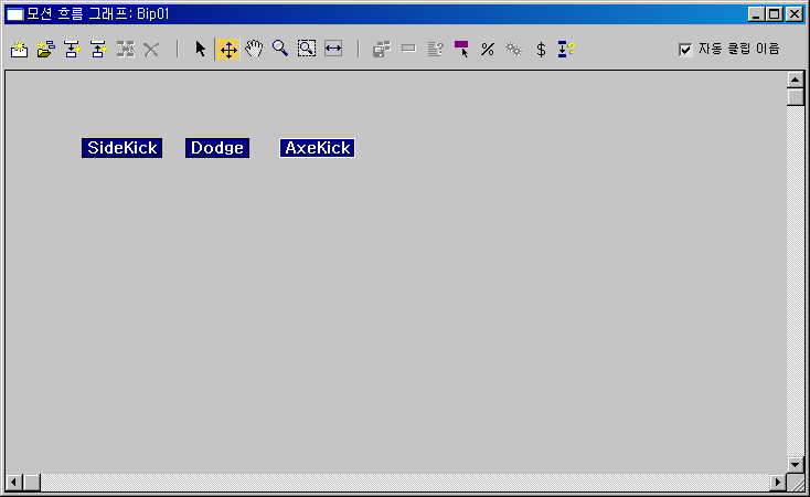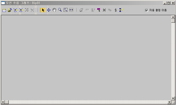Biped에서 회색 모션 흐름을 사용하는 경우 그래프 대화상자의 제목은 "공유 모션 흐름 그래프"가 되며 여기에 회색 모션 흐름의 명칭이 이어집니다. 공유된 모션 흐름은 하나의 회색 모션 흐름으로 다중 Biped를 컨트롤하는데 사용됩니다.