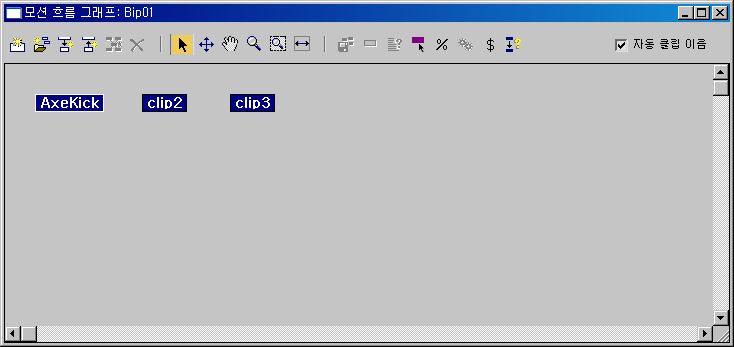 모션 흐름 그래프에 클립1 , 클립2 등으로 명명된 클립 아이콘이 나타납니다.