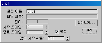 3ds Max에서 클립 대화상자가 열립니다.