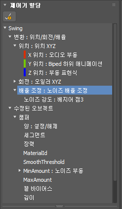 제어기 할당 롤아웃은 다른 변환 제어기를 개별 오브젝트에 부여하고 덧붙입니다. 트랙 뷰에서 제어기를 부여할 수 있습니다. 애니메이션 제어기는 3ds Max에서 모든 애니메이션 작업을 처리하는 플러그인입니다. 사용 가능한 애니메이션 제어기의 전체 리스트를 보려면 애니메이션 제어기를 참조하십시오.