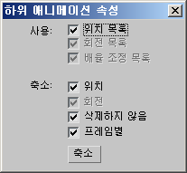 배율 조정 리스트이 옵션을 설정하면 Biped 하위 애니메이션 트랙으로 축소될 배율 조정 제어기를 선택하게 됩니다.
