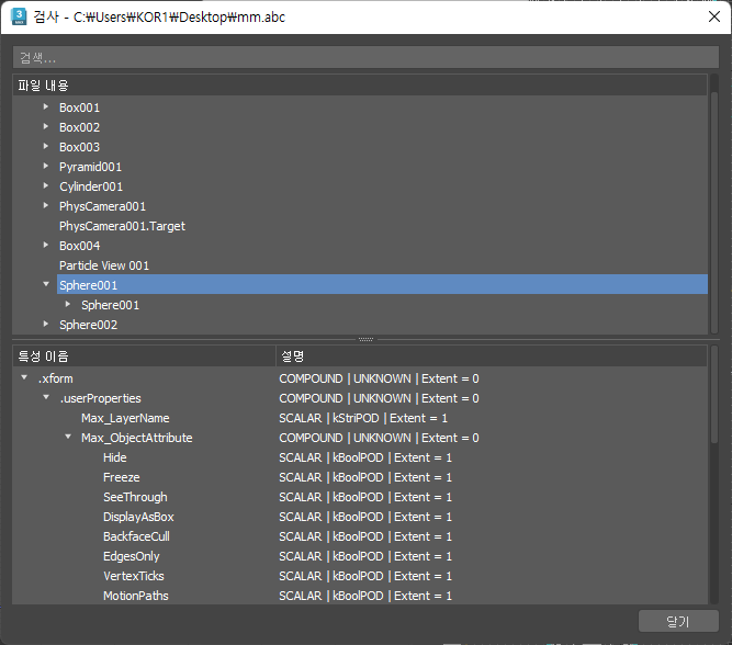주: 3ds Max에서는 Alembic 파일에서 파티클 시스템을 가져오지 않습니다.
