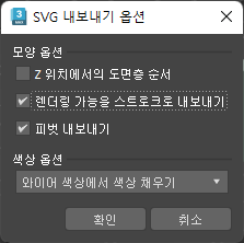 - 선택하면, 렌더링 가능한 스플라인 두께 값이 SVG 스트로크 폭으로 설정됩니다. 스트로크 색상은 모양의 와이어 색상으로 설정됩니다.