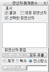 이 리스트 창은 편리한 피연산자 선택 및 편집을 위해 제공됩니다. 선택한 피연산자 옵션(앞 내용 참조)은 리스트에 강조 표시된 피연산자만 표시합니다.