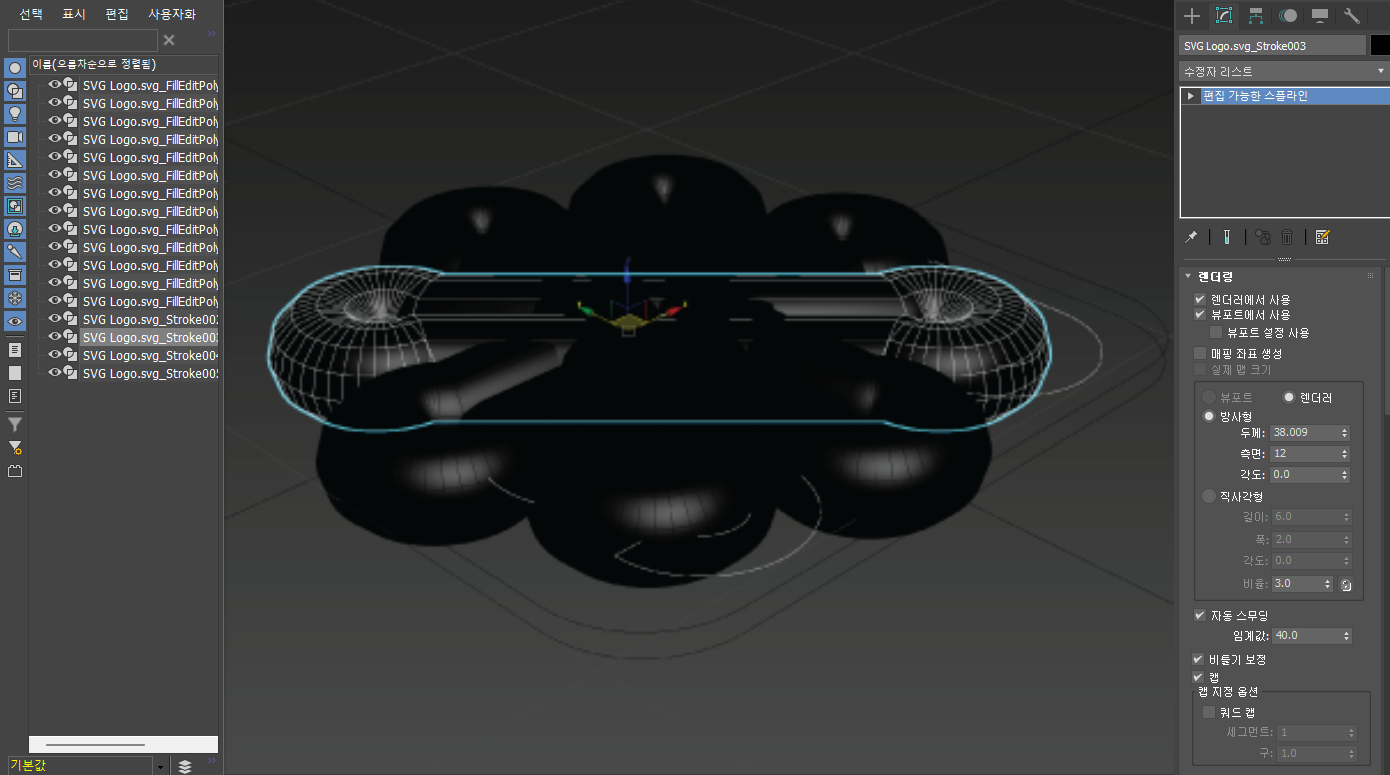 - SVG 파일을 파일 탐색기에서 3ds Max 뷰포트로 드래그합니다.