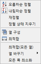 열 제목 마우스 오른쪽 버튼 클릭 메뉴