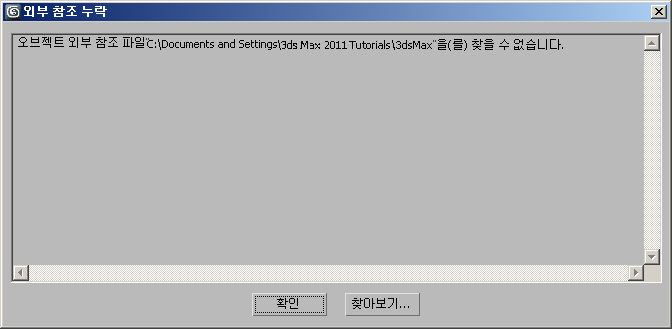 외부 참조를 포함한 장면을 로드하거나 렌더링하나 원래 지정된 외부 참조 오브젝트 또는 장면을 찾을 수 없는 경우 또는 외부 참조 오브젝트명이 소스 파일의 오브젝트명과 일치하지 않는 경우 다음 내용의 경고가 표시됩니다.