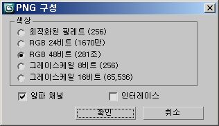 출력 파일 렌더링 대화상자에서 렌더 또는 설정을 클릭하면 PNG 구성 대화상자가 표시됩니다.